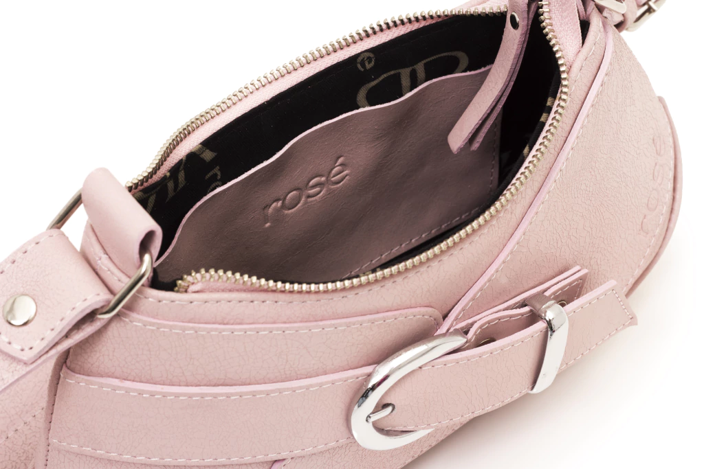 En el exterior, lleva el grabado “rosé” y nuestro isologo flor en la terminación de la correa, sello distintivo de la marca.