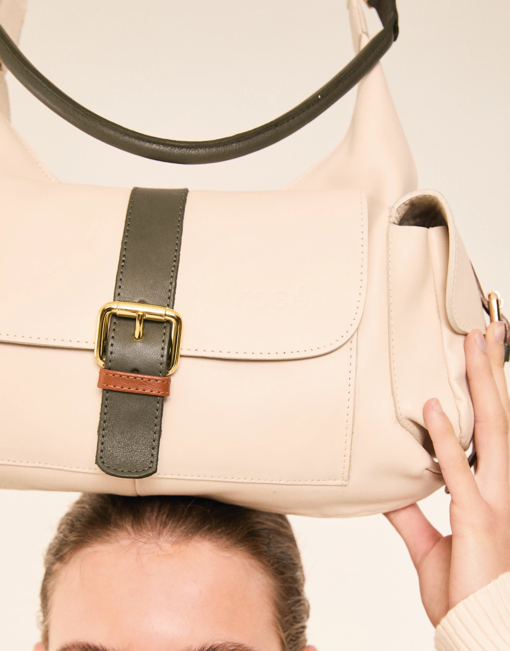 Diseñada para adaptarse a cada ocasión, cuenta con una correa larga regulable y una correa corta de mano, ambas desmontables para mayor comodidad.