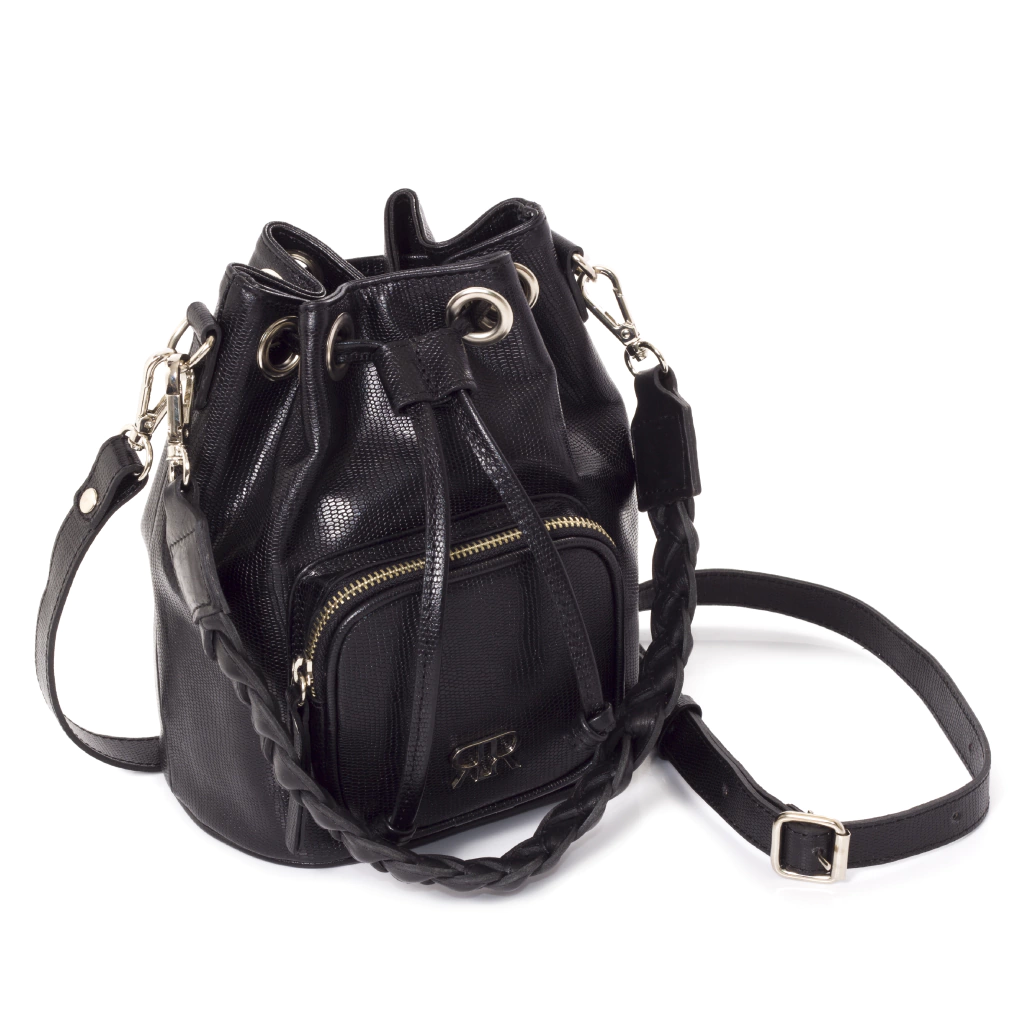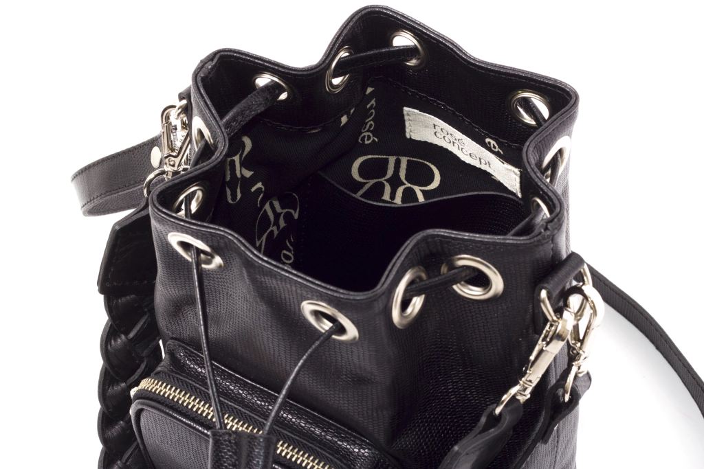 Marinero Camile es un diseño exclusivo Rosé Concept. El acceso principal es mediante cordón de cuero ajustable por medio de ojales. Posee un bolsillo externo con cierre metálico de 13x11 cm. Posee aplique metálico con logo de la marca en el frente.