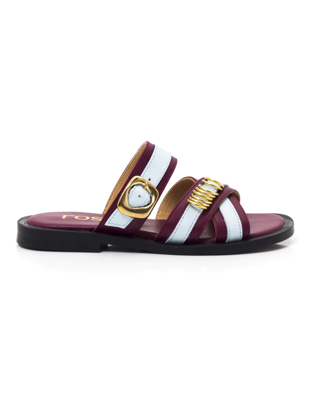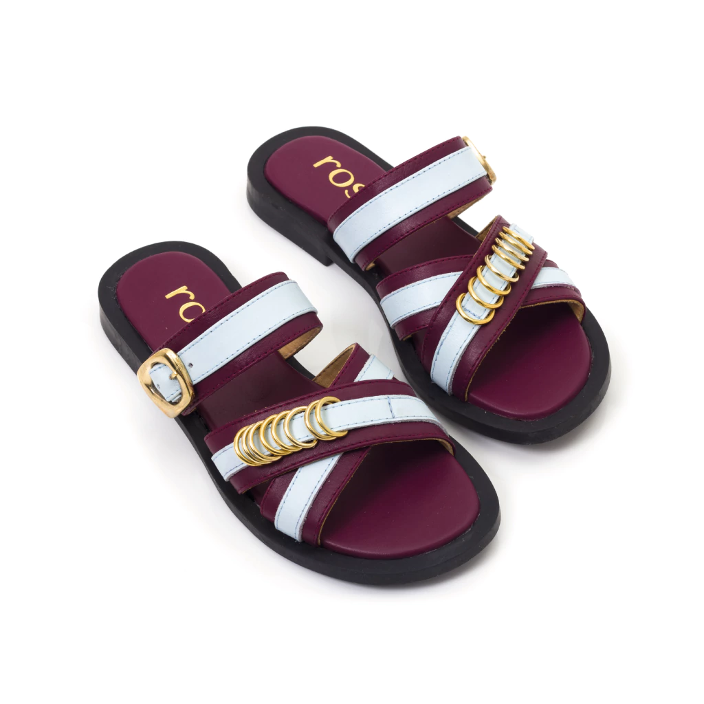 Confeccionadas 100% en napas de cuero combinados, las Sandalias Sofía son el balance perfecto entre comodidad y distinción. Su base chata con suelin antideslizante es super liviana y confortable. Con una altura de 2 cm y un agarre perfecto, ofrecen comodidad durante todo el día. Herrajes dorados.